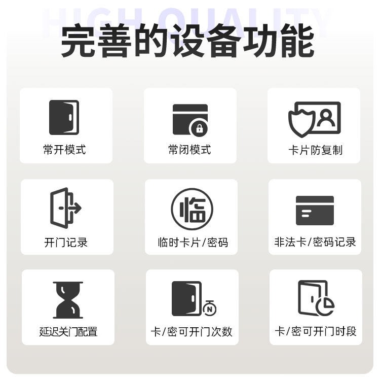 通辽这款智能门锁提供室内门锁和防盗门锁两种选择,其中室内门锁尺寸为 2806521mm,适配 5050 锁体;防盗门锁尺寸为 3657021mm,适配 6068 锁体,可满足不同场景的安装需求。它采用铝合金一体成型搭配钢化玻璃面板打造,兼具坚固耐用的品质与简洁美观的视觉效果。门锁支持蓝牙无线通讯,解锁方式丰富多样,密码、卡片、蓝牙、钥匙四种方式随心选择,满足不同使用习惯与应急需求。其工作温度范围为 - 20~70℃,能适应多数地区的气候条件,采用碱性电池供电,安装更换便捷,是兼具安全性与实用性的门锁选择。